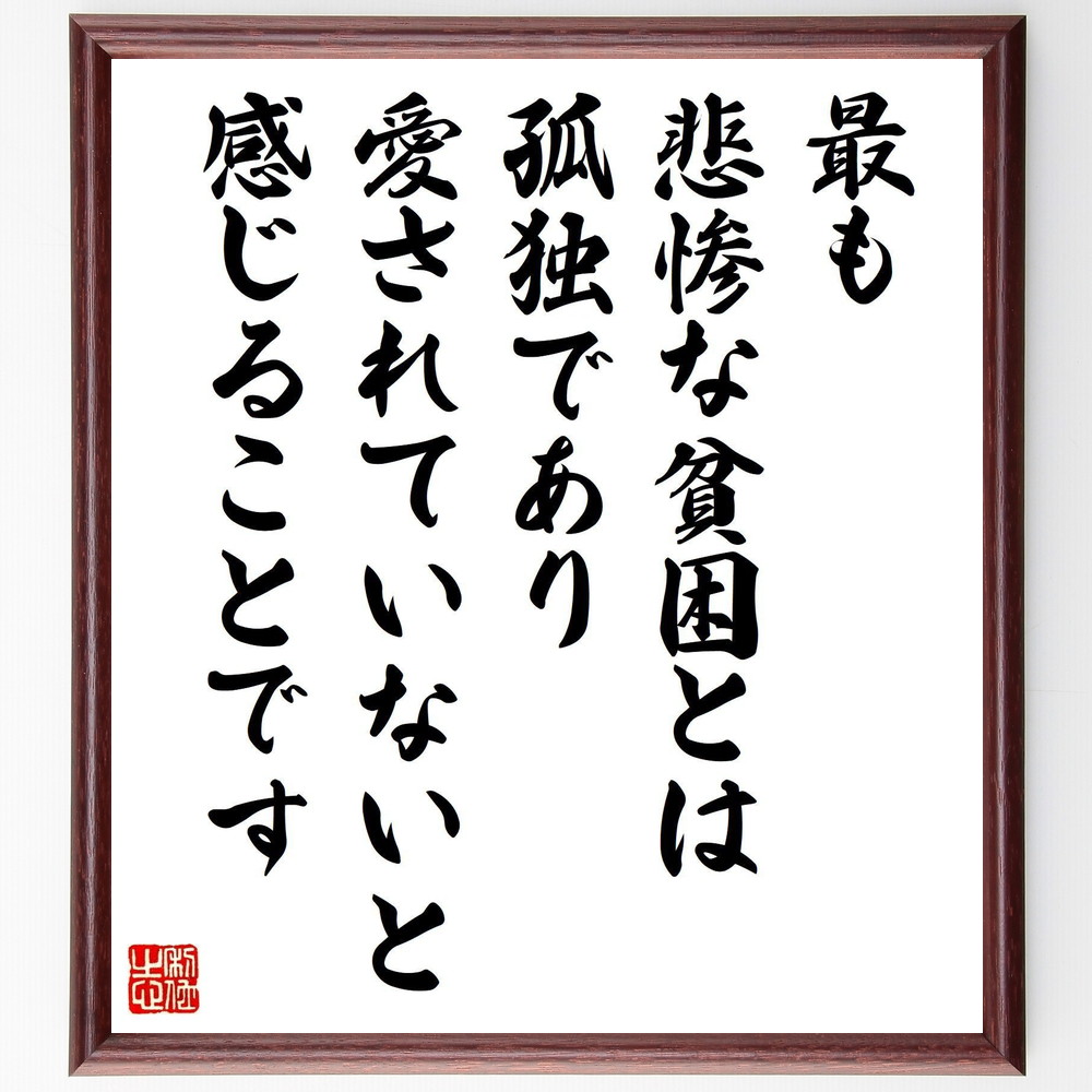 名言「最も悲惨な貧困とは孤独であり、愛されていないと感じることです」手書き書道色紙額/受注後の毛筆直筆