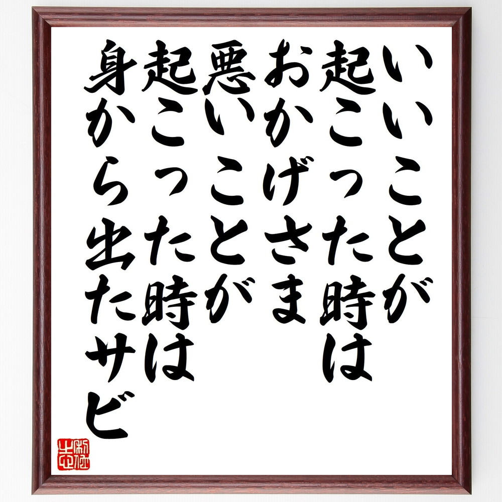 名言「いいことが起こった時はおかげさま、悪いことが起こった時は身から出たサビ」手書き書道色紙額/受注後の毛筆直筆