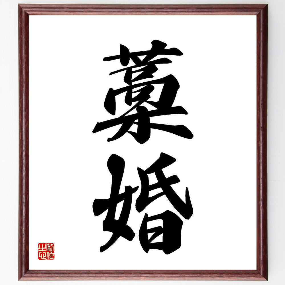 二字熟語「藁婚」手書き書道色紙額/受注後の毛筆直筆