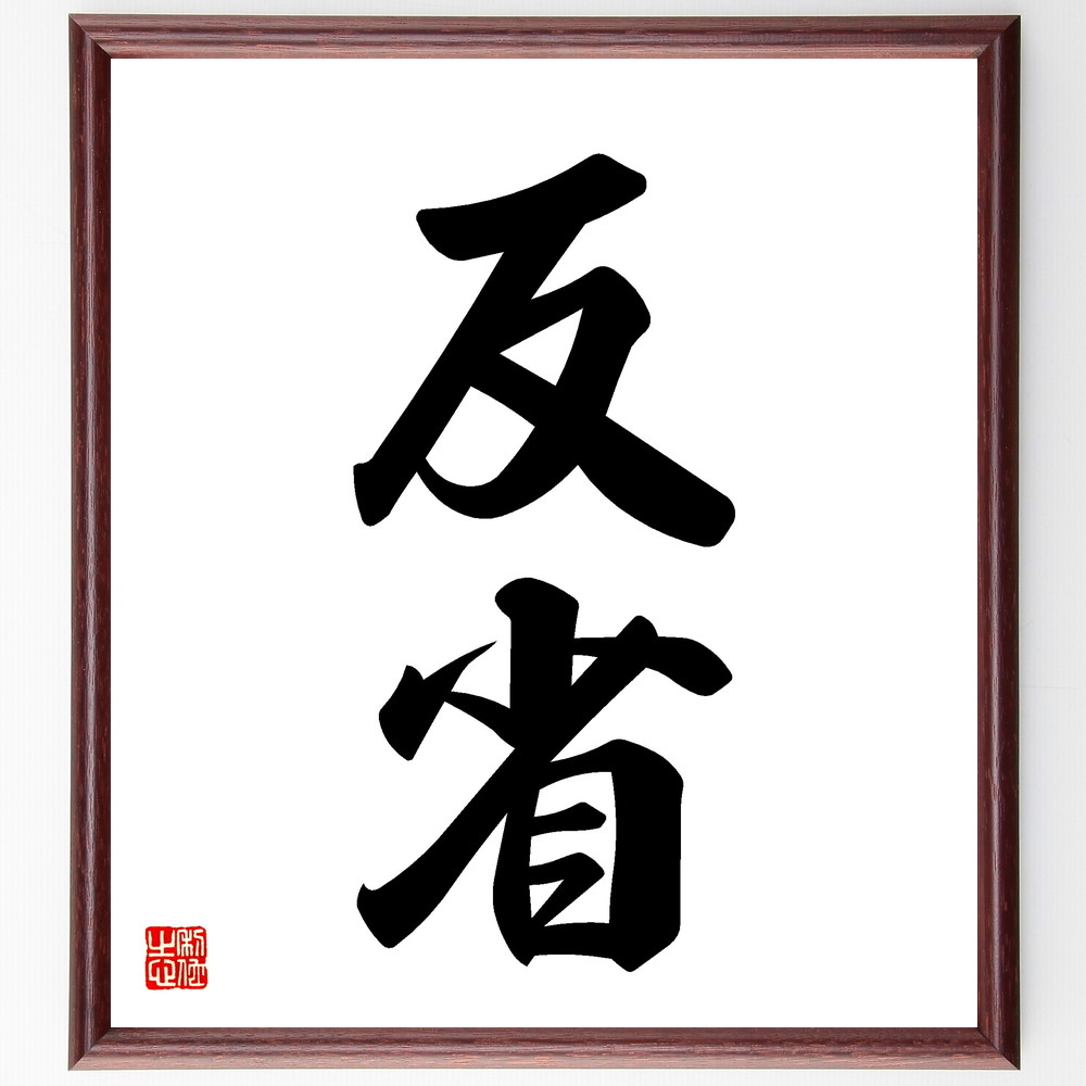 二字熟語「反省」手書き書道色紙額/受注後の毛筆直筆