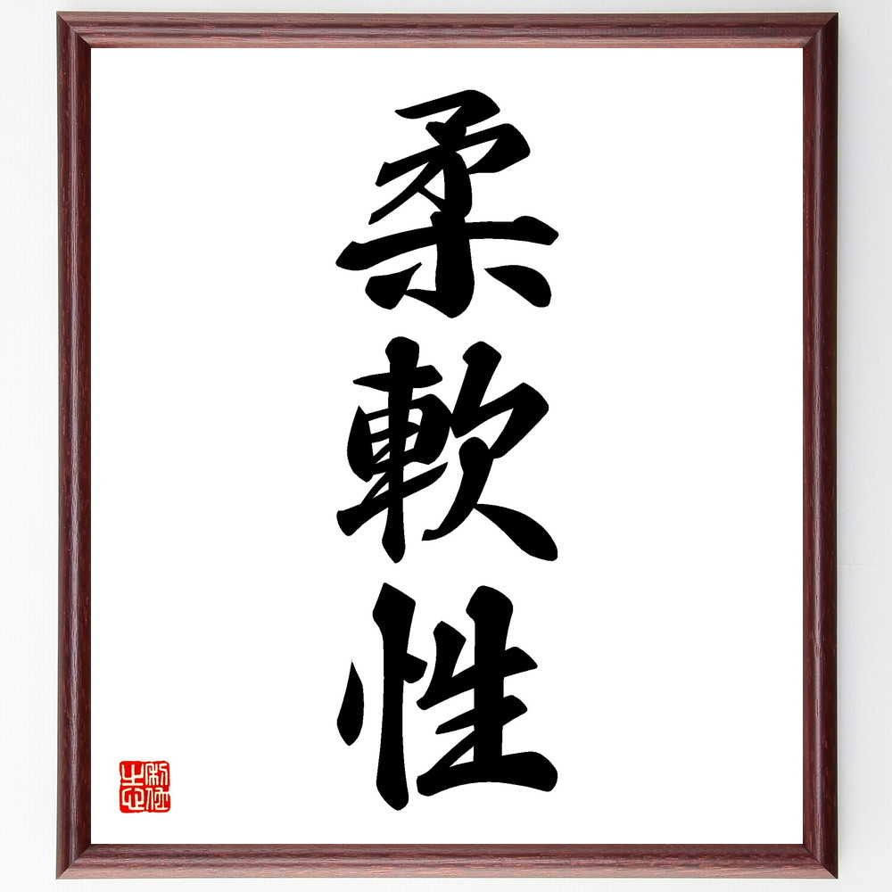 三字熟語「柔軟性」手書き書道色紙額/受注後の毛筆直筆