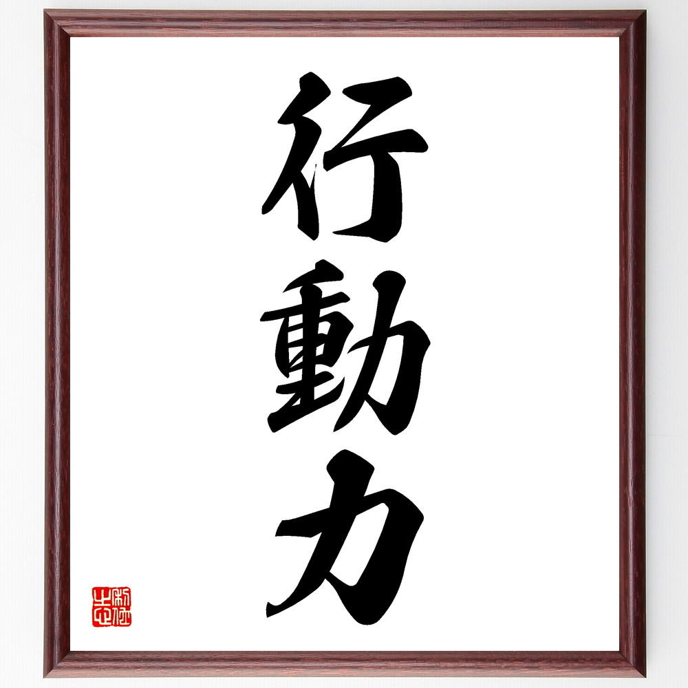 三字熟語「行動力」手書き書道色紙額/受注後の毛筆直筆