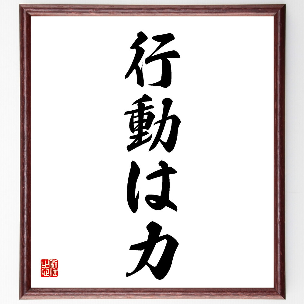 名言「行動は力」手書き書道色紙額/受注後の毛筆直筆