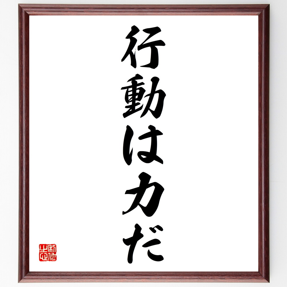 名言「行動は力だ」手書き書道色紙額/受注後の毛筆直筆