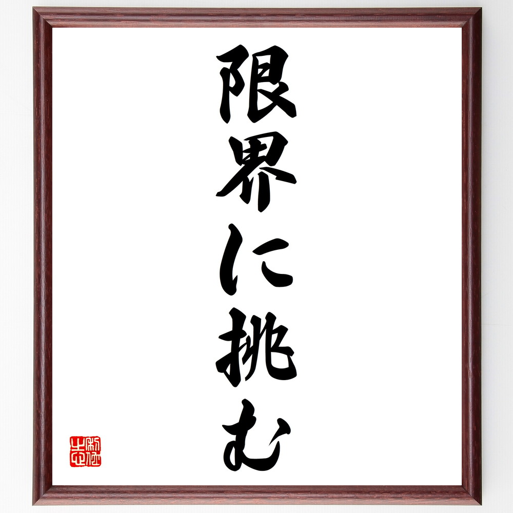 名言「限界に挑む」手書き書道色紙額/受注後の毛筆直筆
