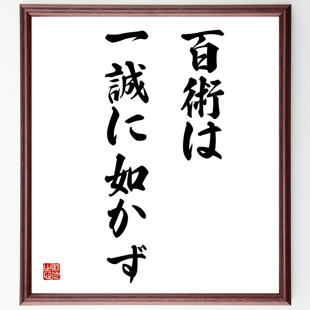 名言「百術は、一誠に如かず」手書き書道色紙額/受注後の毛筆直筆