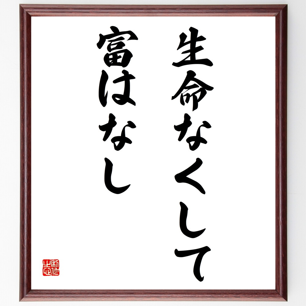 ジョン・ラスキンの名言「生命なくして富はなし」手書き書道色紙額/受注後の毛筆直筆