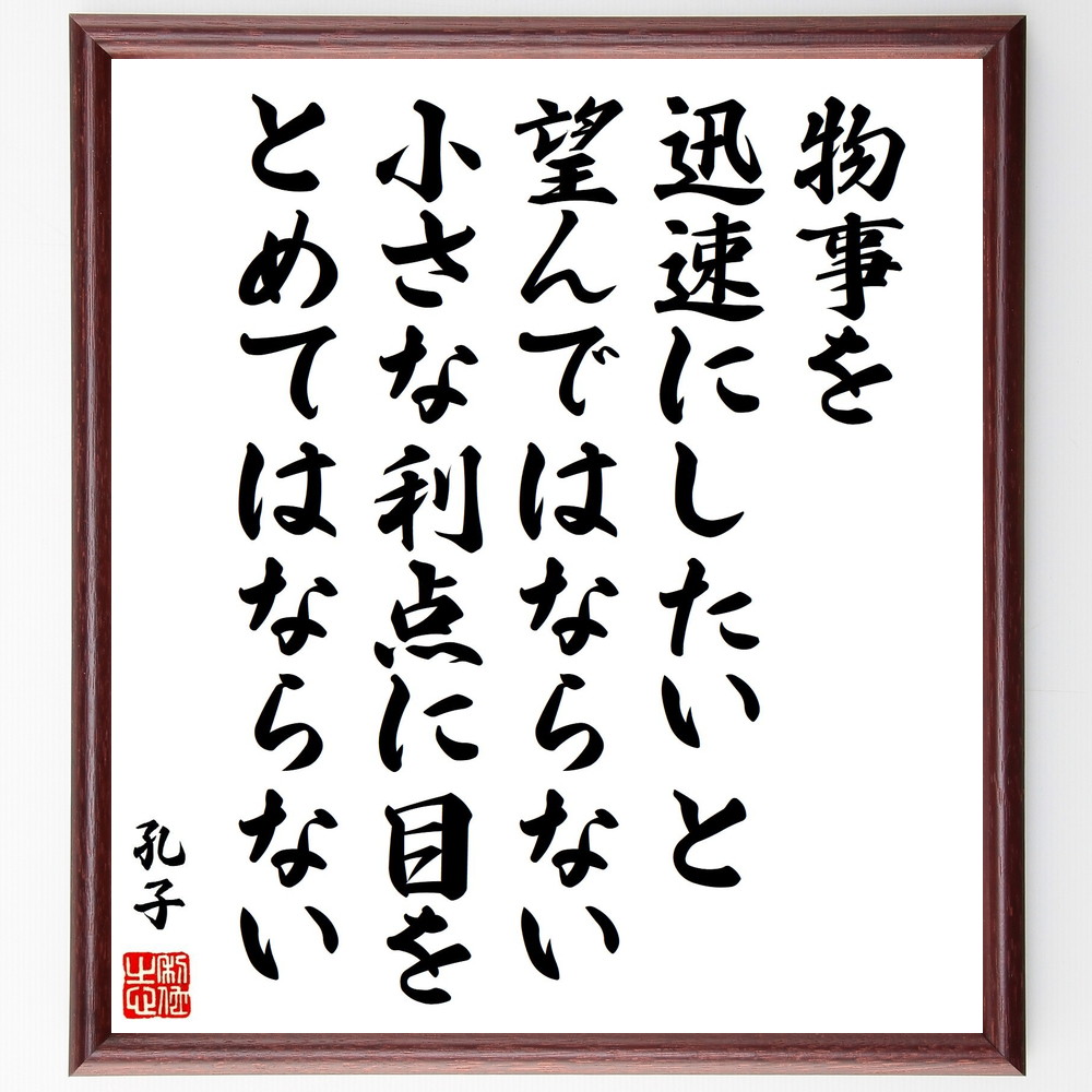 孔子の名言「物事を迅速にしたいと、望んではならない、小さな利点に目をとめてはならない」手書き書道色紙額/受注後の毛筆直筆