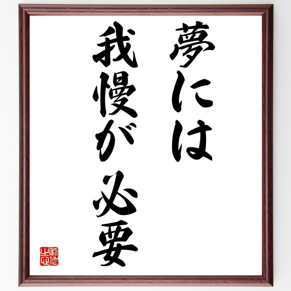 名言「夢には我慢が必要」手書き書道色紙額/受注後の毛筆直筆