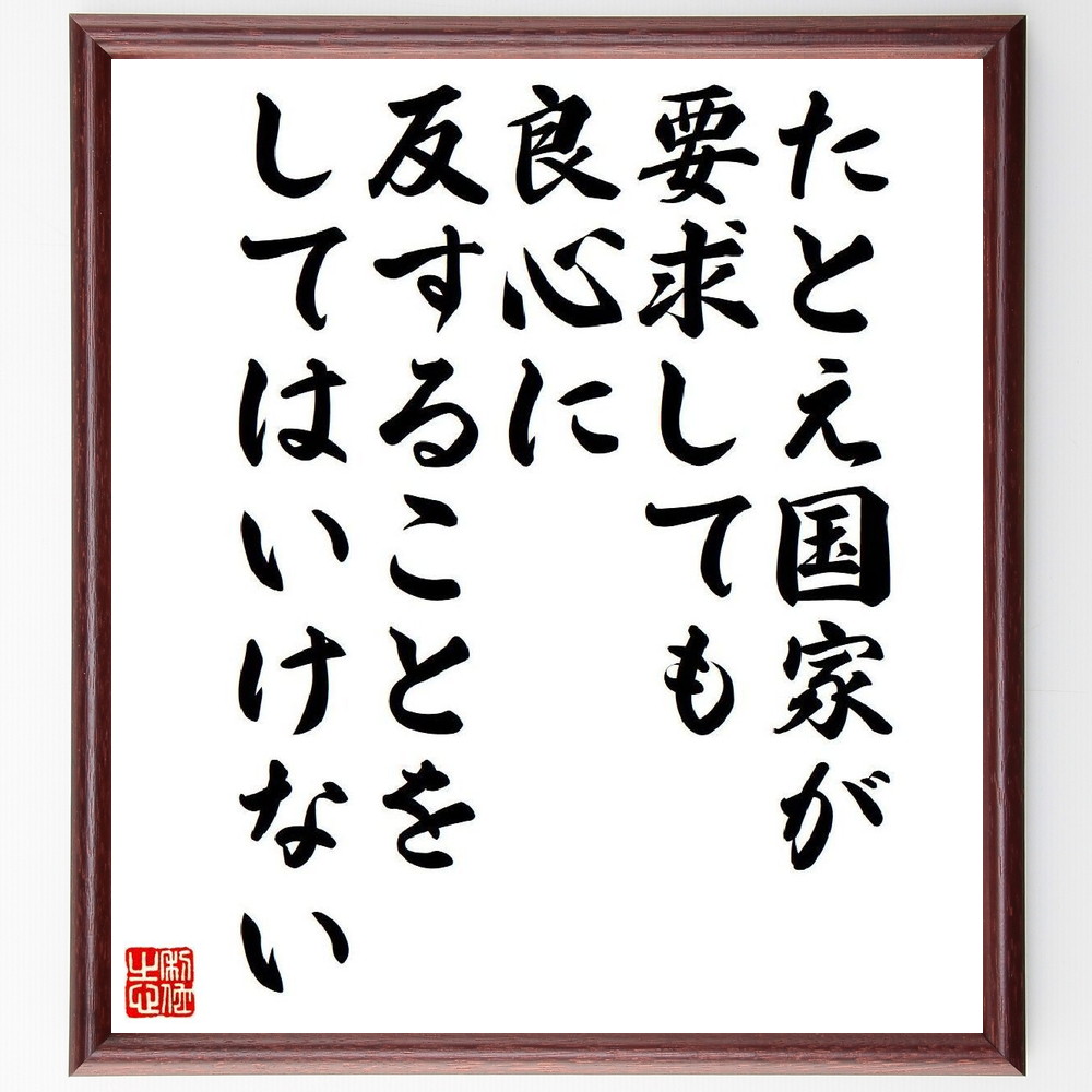 アインシュタインの名言「たとえ国家が要求しても良心に反することをしてはいけない」手書き書道色紙額/受注後の毛筆直筆