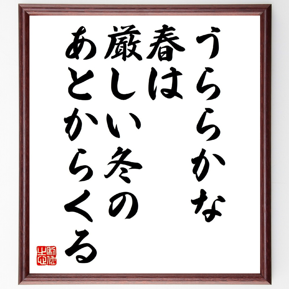 名言「うららかな春は、厳しい冬のあとからくる」手書き書道色紙額/受注後の毛筆直筆
