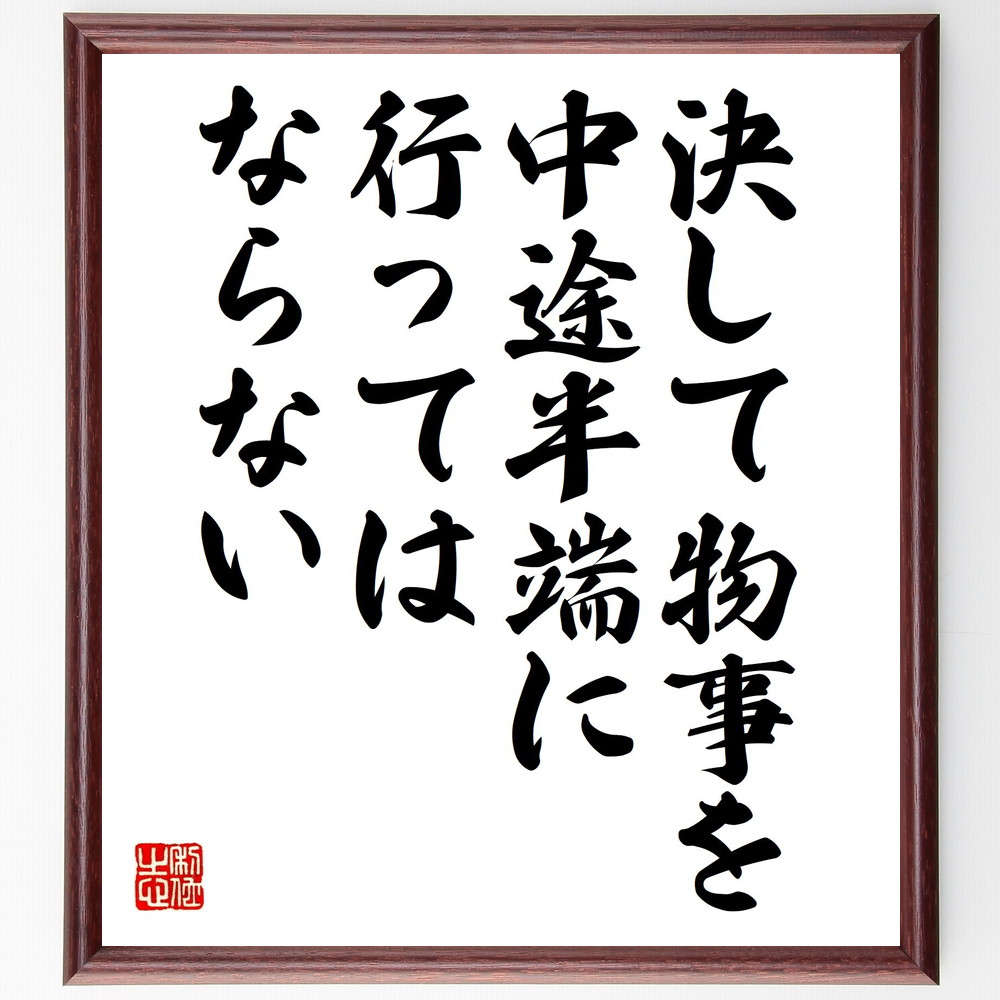 名言「決して物事を、中途半端に行ってはならない」手書き書道色紙額/受注後の毛筆直筆