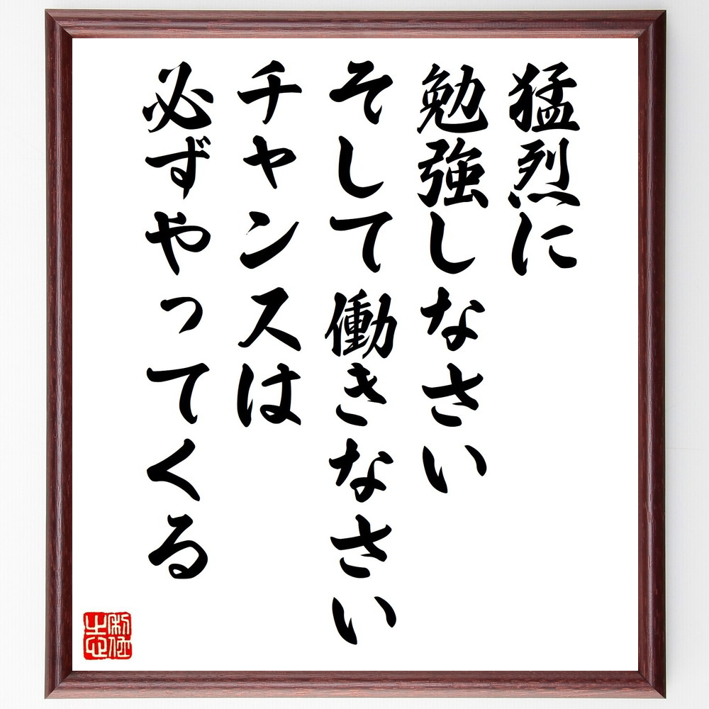 名言「猛烈に勉強しなさい、そして働きなさい、チャンスは必ずやってくる」手書き書道色紙額/受注後の毛筆直筆