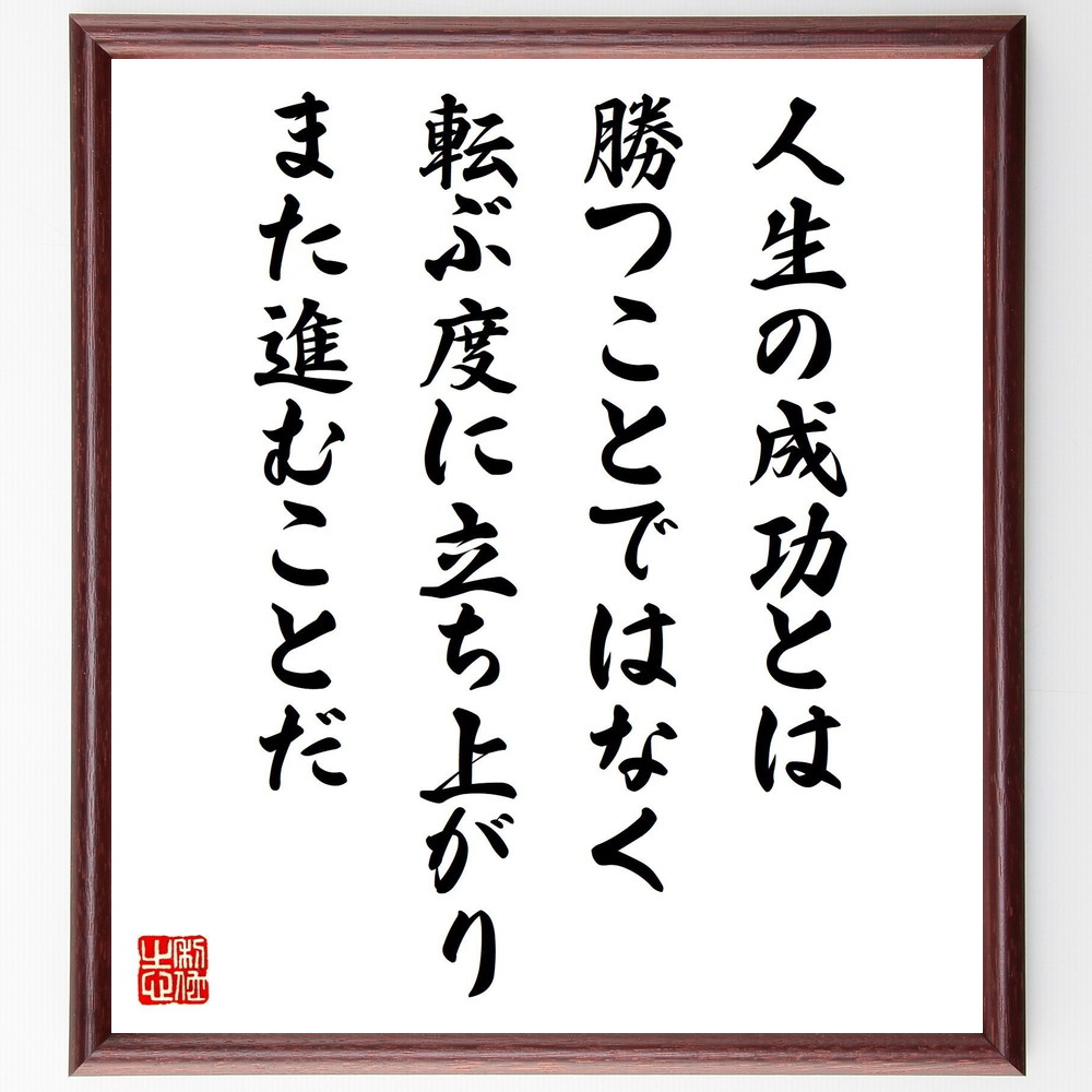 名言「人生の成功とは勝つことではなく、転ぶ度に立ち上がり、また進むことだ」手書き書道色紙額/受注後の毛筆直筆