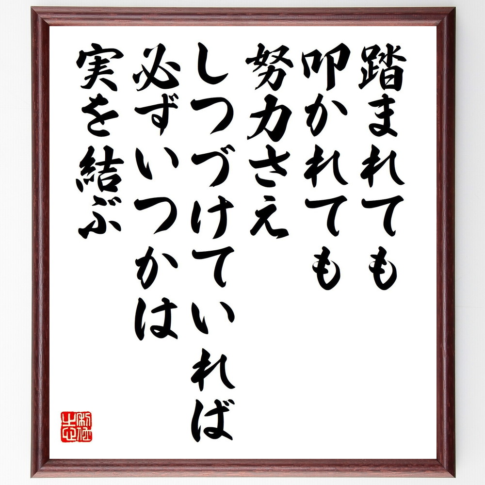 名言「踏まれても叩かれても、努力さえしつづけていれば、必ずいつかは実を結ぶ」手書き書道色紙額/受注後の毛筆直筆