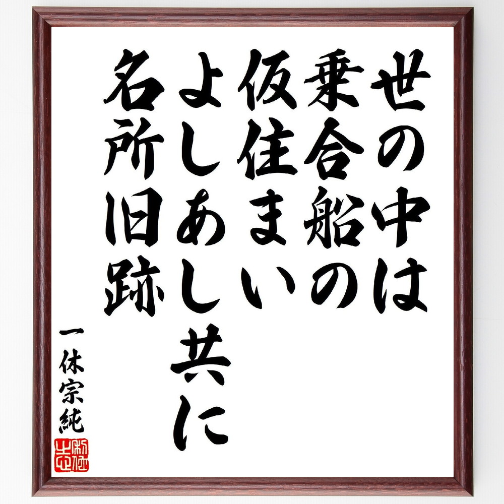 一休宗純の短歌・俳句「世の中は、乗合船の仮住まい、よしあし共に、名所旧跡」手書き書道色紙額/受注後の毛筆直筆