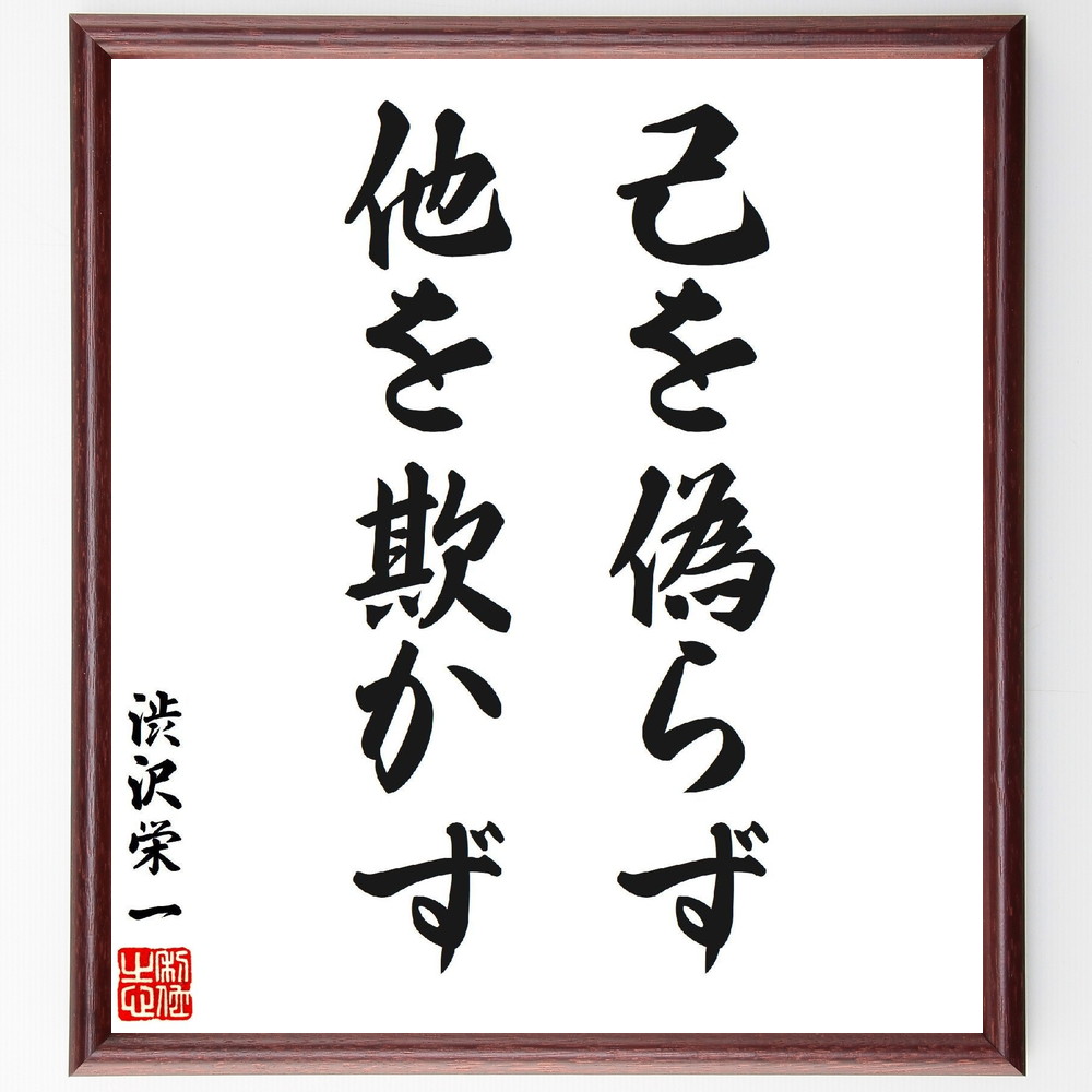 渋沢栄一の名言「己を偽らず、他を欺かず」手書き書道色紙額/受注後の毛筆直筆