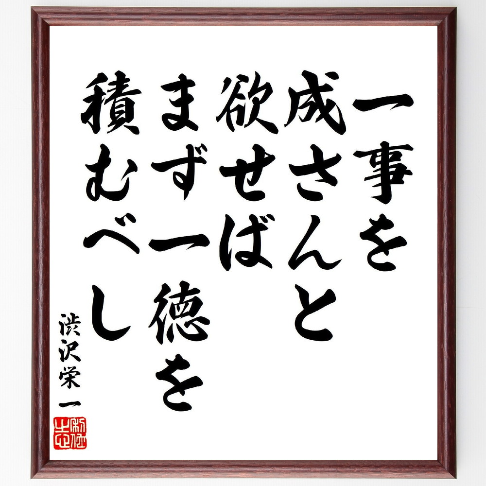 渋沢栄一の名言「一事を成さんと欲せば、まず一徳を積むべし」手書き書道色紙額/受注後の毛筆直筆