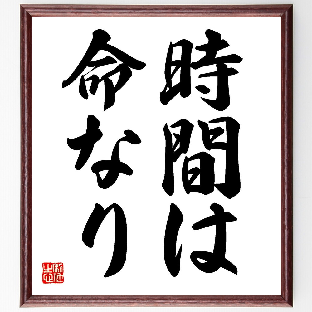 名言「時間は命なり」手書き書道色紙額/受注後の毛筆直筆