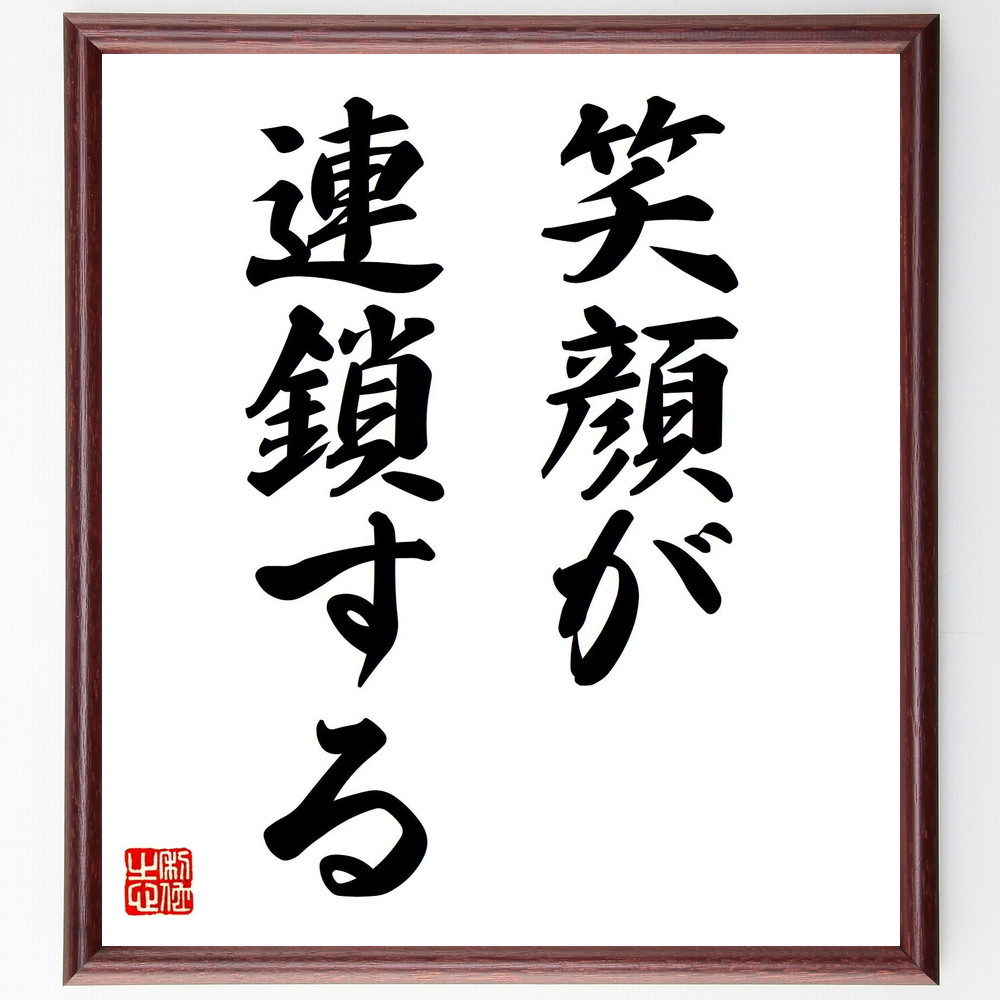 名言「笑顔が連鎖する」手書き書道色紙額/受注後の毛筆直筆