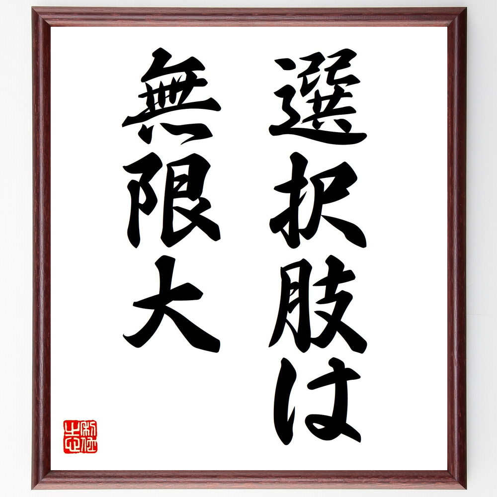 名言「選択肢は無限大」手書き書道色紙額/受注後の毛筆直筆