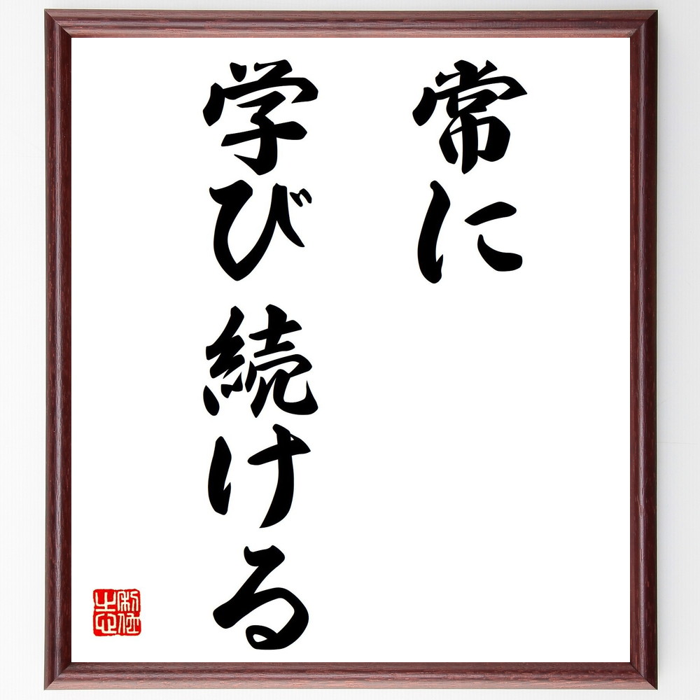 名言「常に学び続ける」手書き書道色紙額/受注後の毛筆直筆