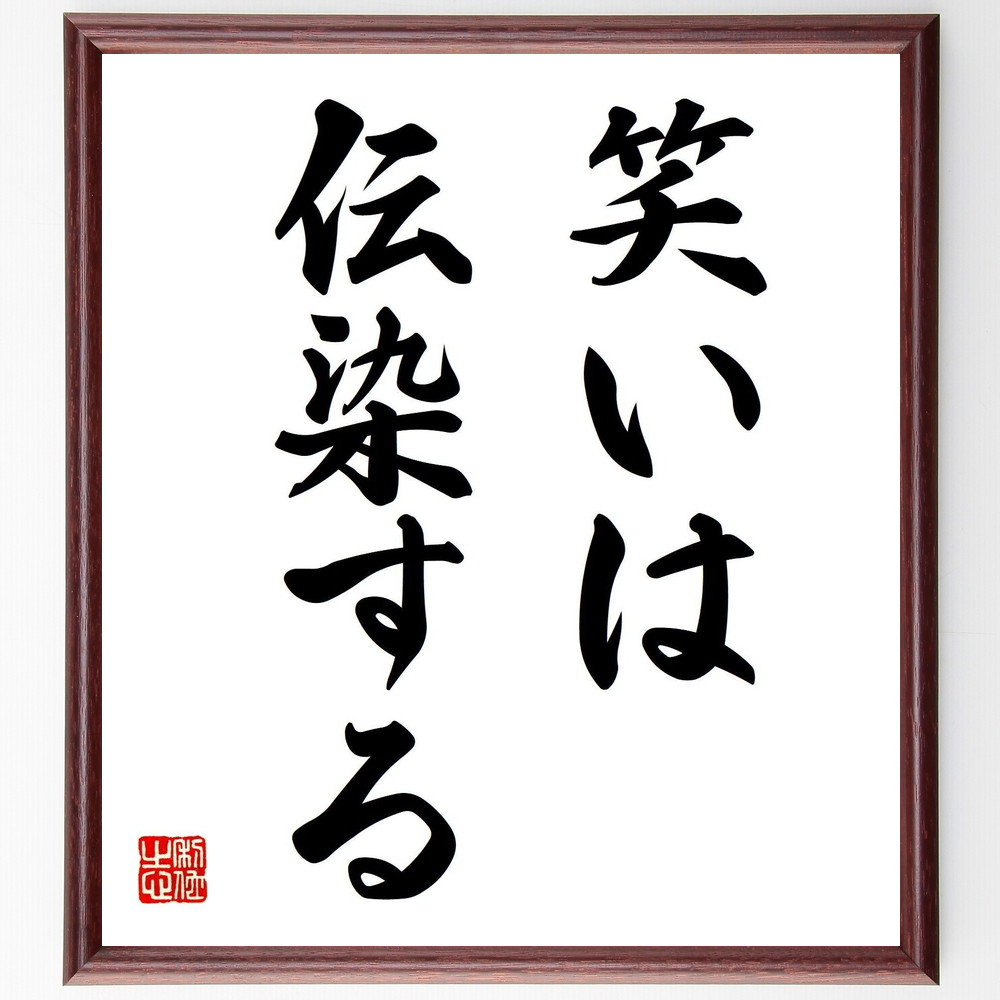 名言「笑いは伝染する」手書き書道色紙額/受注後の毛筆直筆