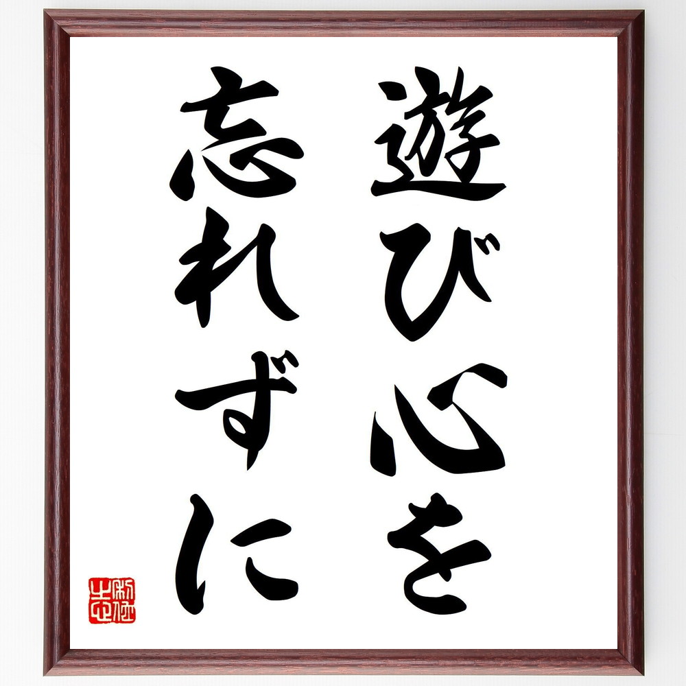 名言「遊び心を忘れずに」手書き書道色紙額/受注後の毛筆直筆