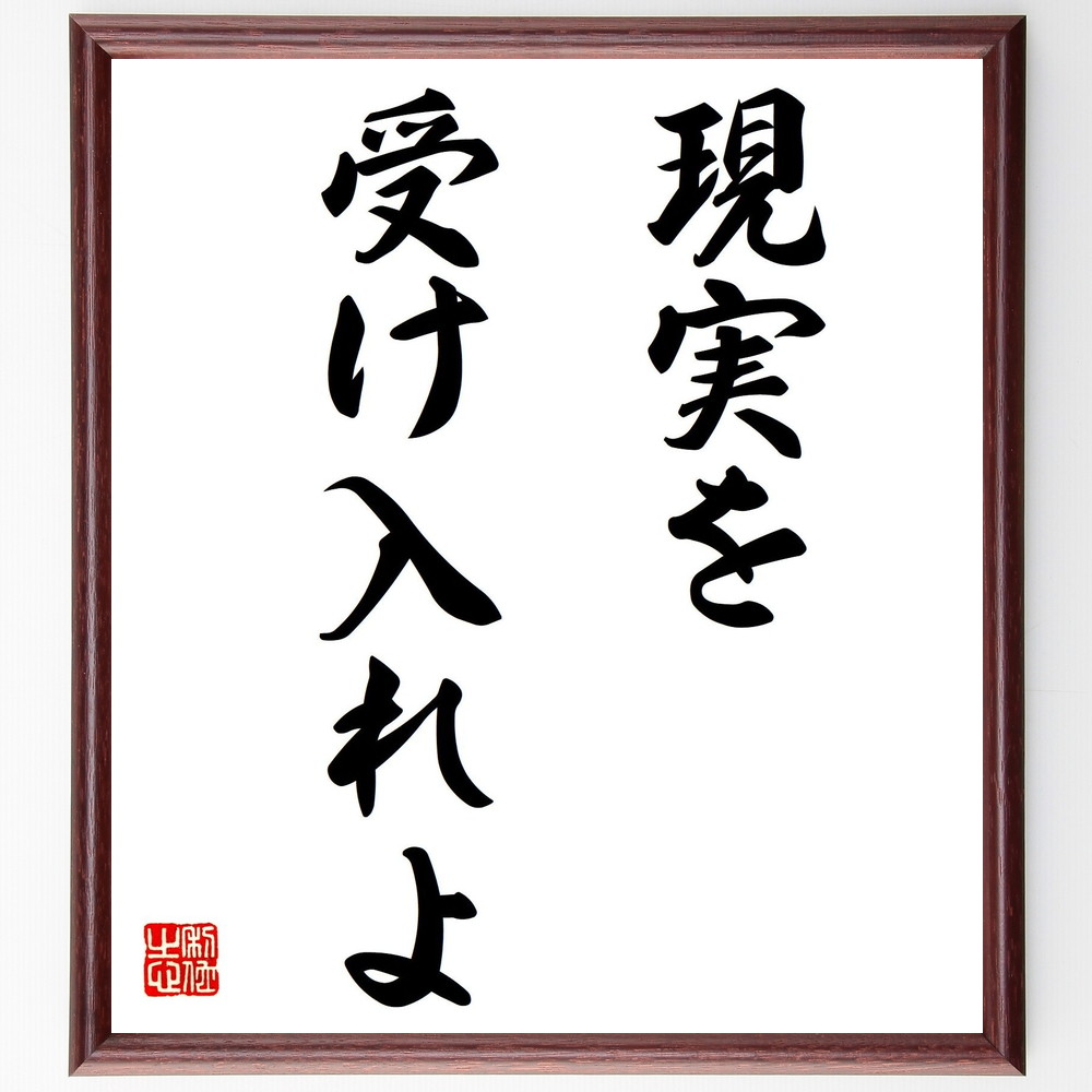 名言「現実を受け入れよ」手書き書道色紙額/受注後の毛筆直筆