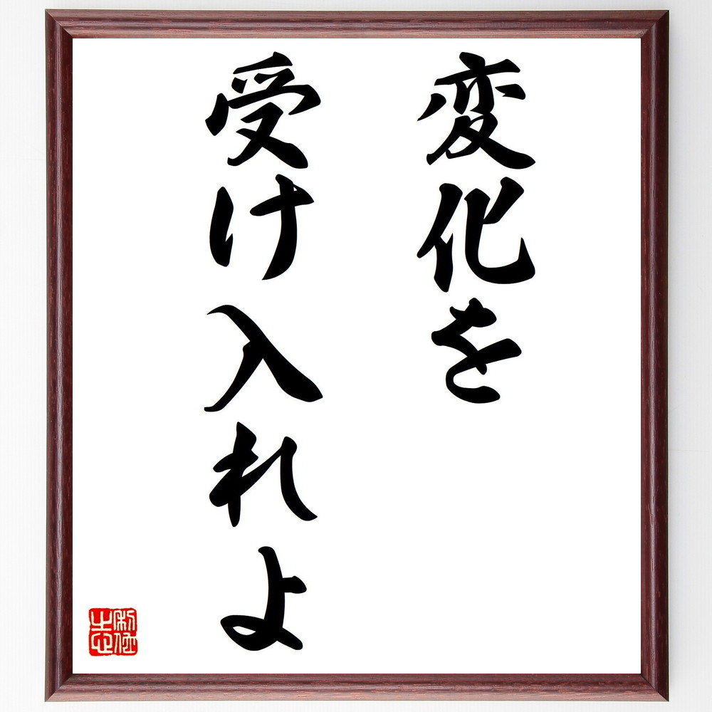 名言「変化を受け入れよ」手書き書道色紙額/受注後の毛筆直筆