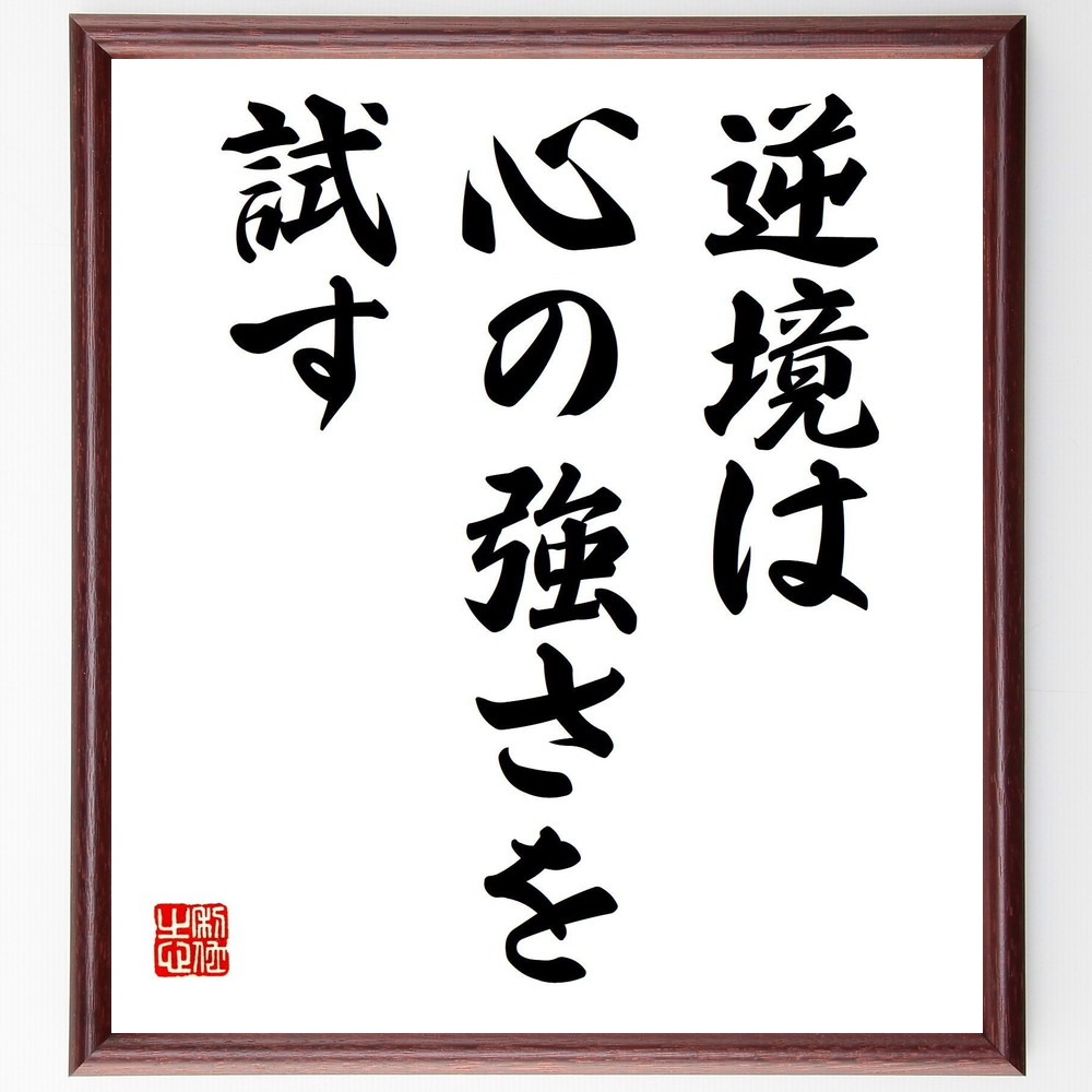名言「逆境は心の強さを試す」手書き書道色紙額/受注後の毛筆直筆