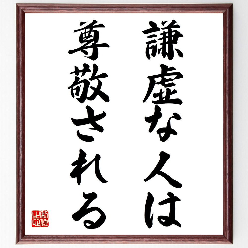 名言「謙虚な人は尊敬される」手書き書道色紙額/受注後の毛筆直筆