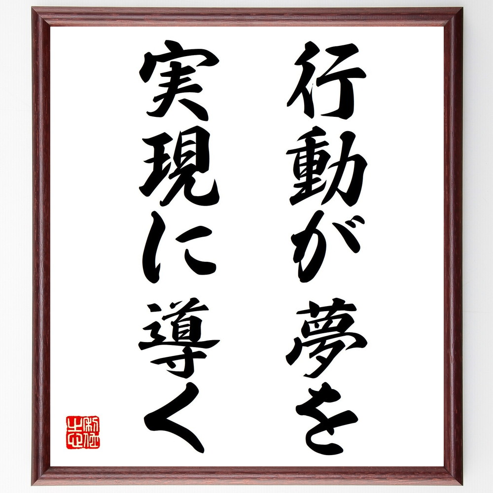 名言「行動が夢を実現に導く」手書き書道色紙額/受注後の毛筆直筆