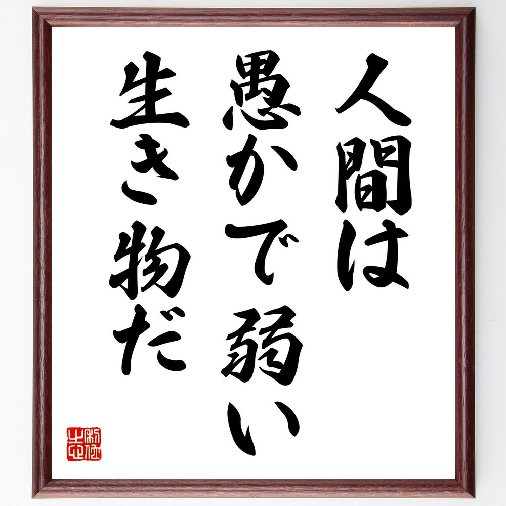 名言「人間は、愚かで弱い生き物だ」手書き書道色紙額/受注後の毛筆直筆