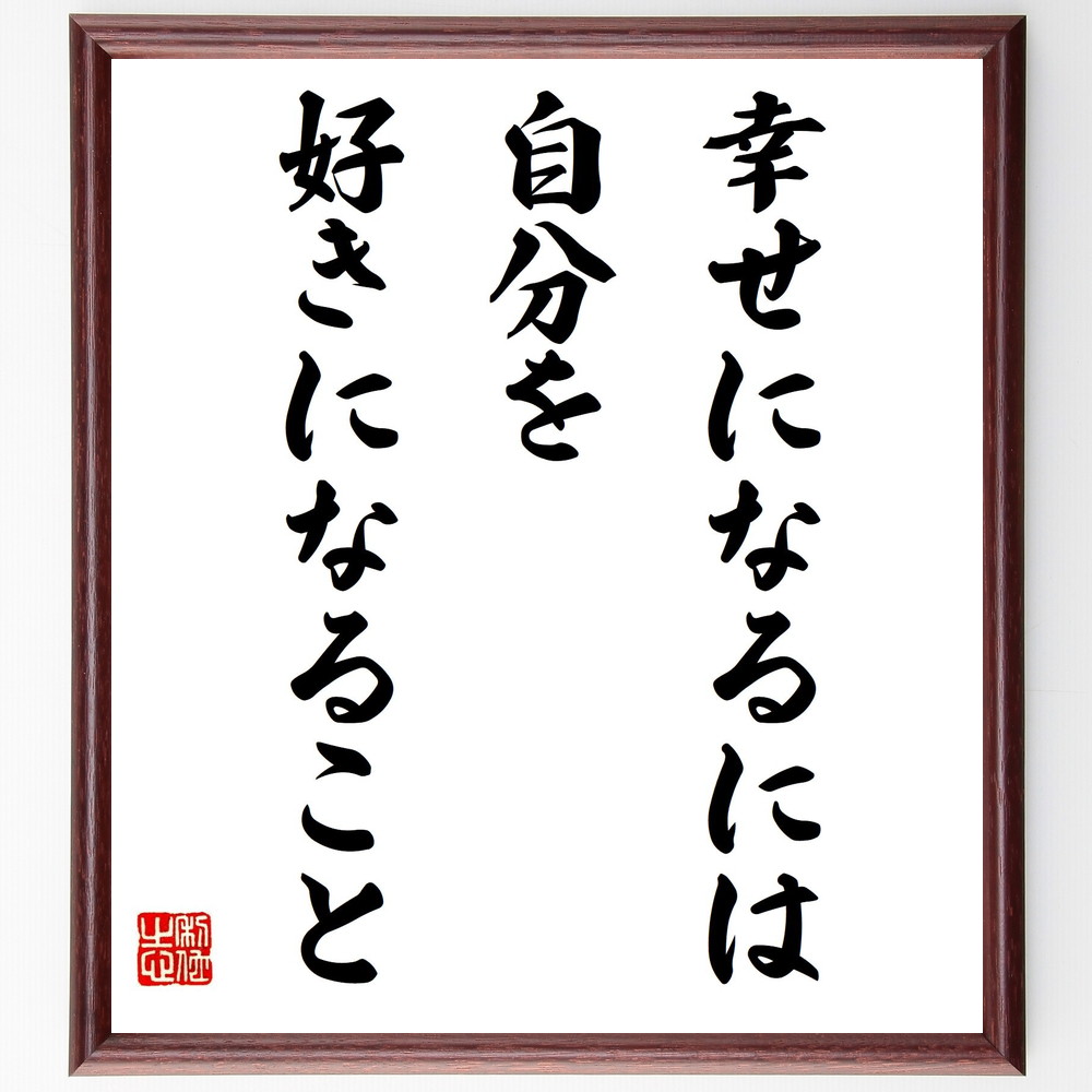 名言「幸せになるには、自分を好きになること」手書き書道色紙額/受注後の毛筆直筆