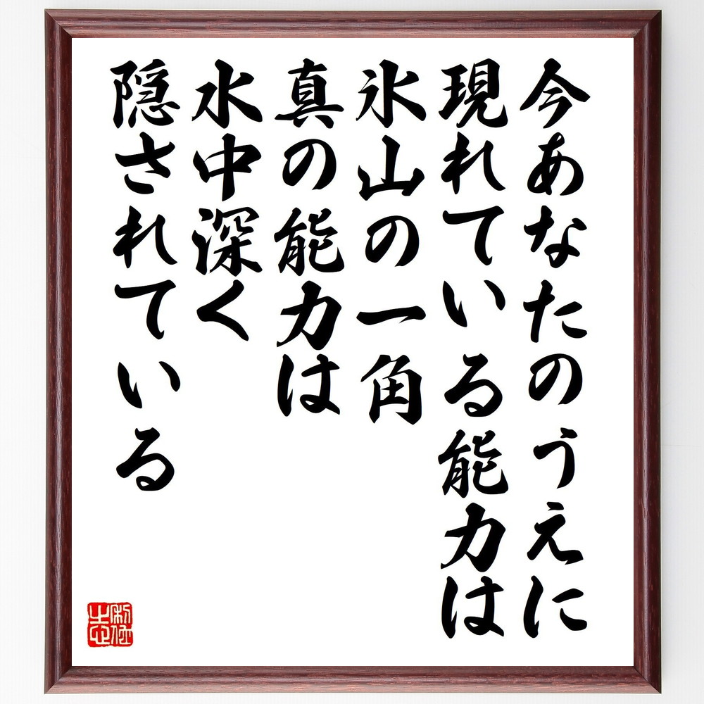 名言「今、あなたのうえに現れている能力は氷山の一角、真の能力は、水中深く隠されている」手書き書道色紙額/受注後の毛筆直筆