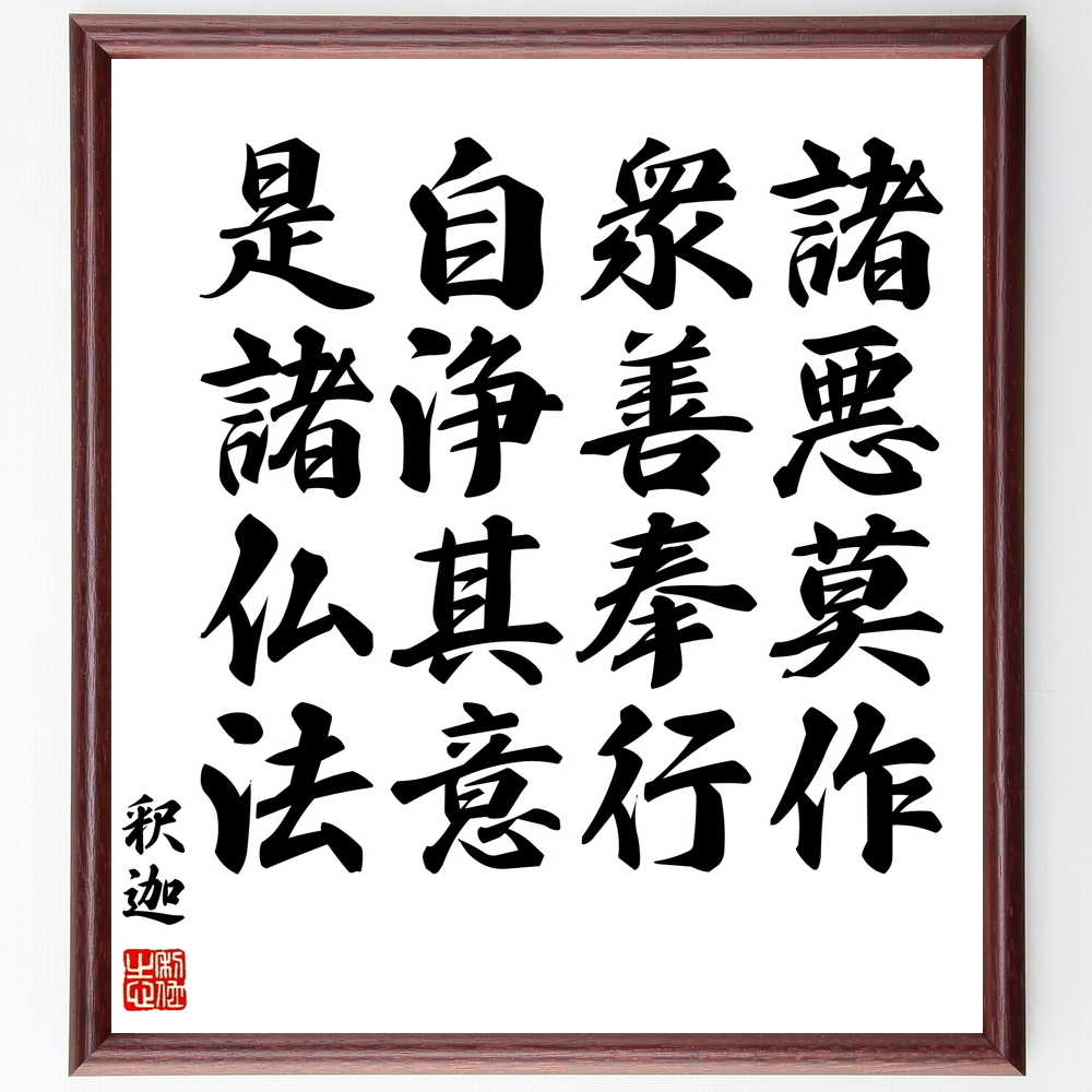 釈迦(ブッダ)の名言「諸悪莫作、衆善奉行、自浄其意、是諸仏法」手書き書道色紙額/受注後の毛筆直筆