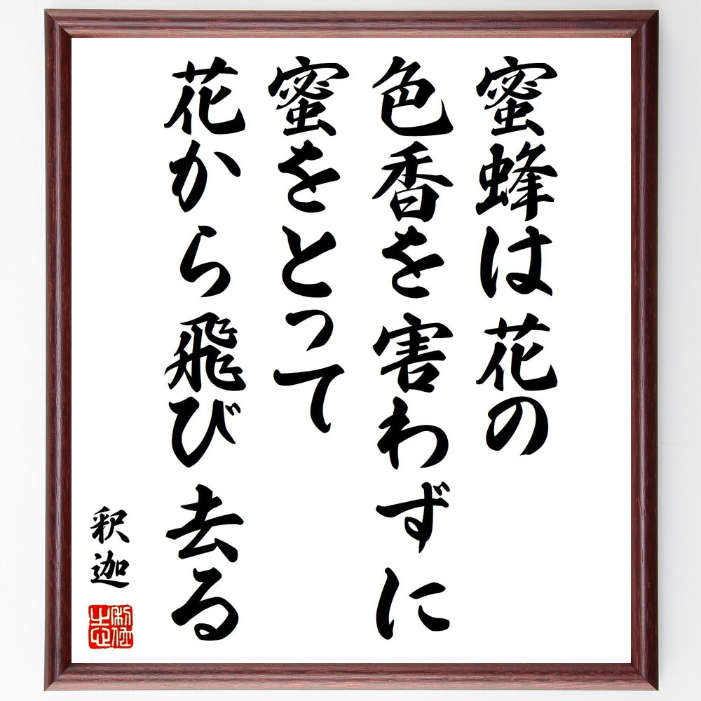 釈迦(ブッダ)の名言「蜜蜂は花の色香を害わずに、蜜をとって花から飛び去る」手書き書道色紙額/受注後の毛筆直筆