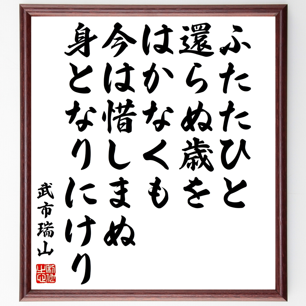 武市瑞山の名言「ふたたひと還らぬ歳をはかなくも今は惜しまぬ身となりにけり」手書き書道色紙額/受注後の毛筆直筆