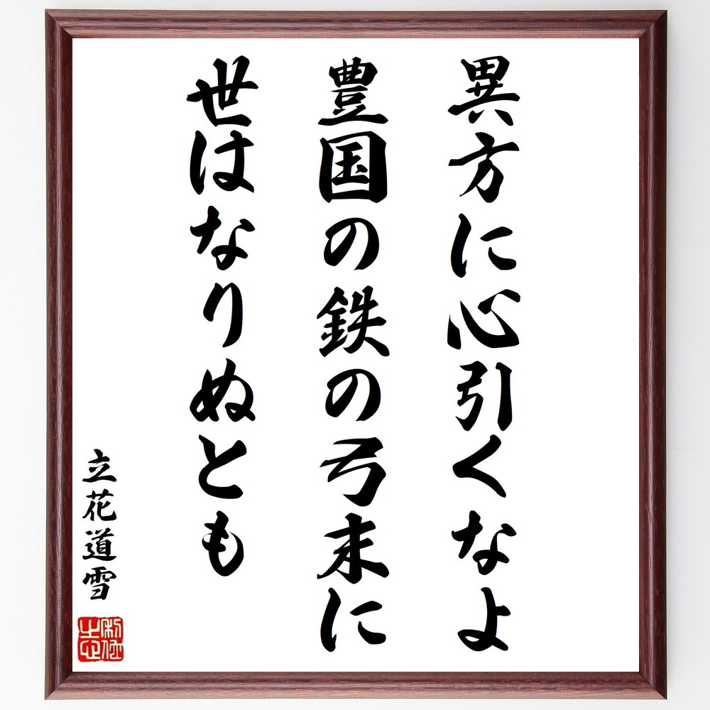 立花道雪の名言「異方に心引くなよ豊国の鉄の弓末に世はなりぬとも」手書き書道色紙額/受注後の毛筆直筆