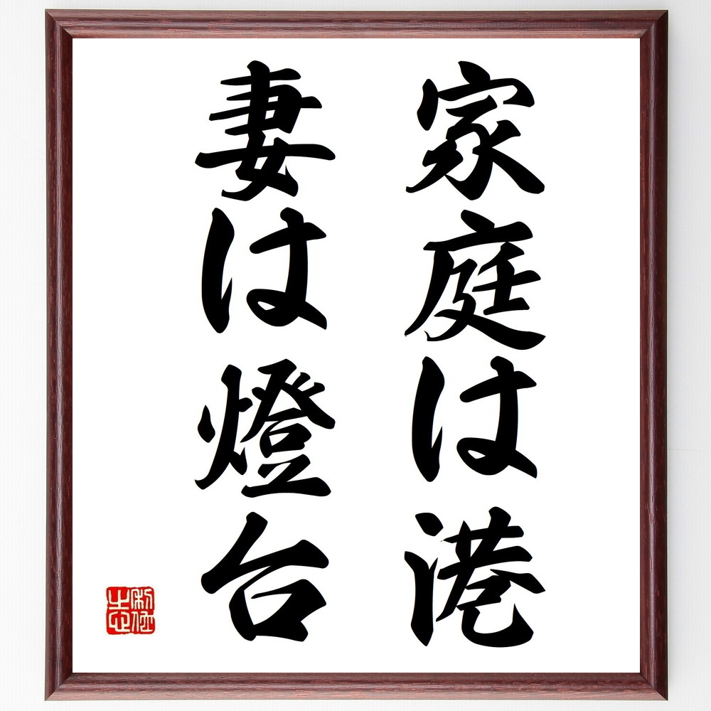 名言「家庭は港、妻は燈台」手書き書道色紙額/受注後の毛筆直筆