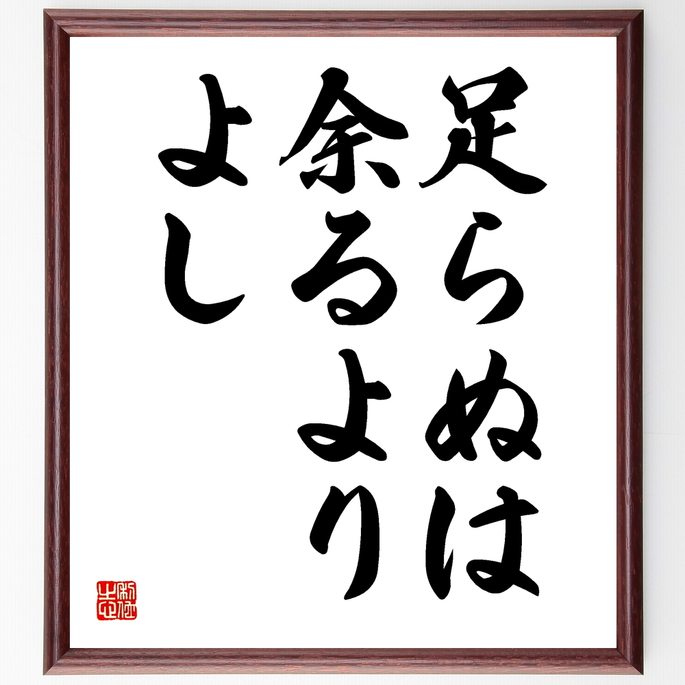 名言「足らぬは余るよりよし」手書き書道色紙額/受注後の毛筆直筆