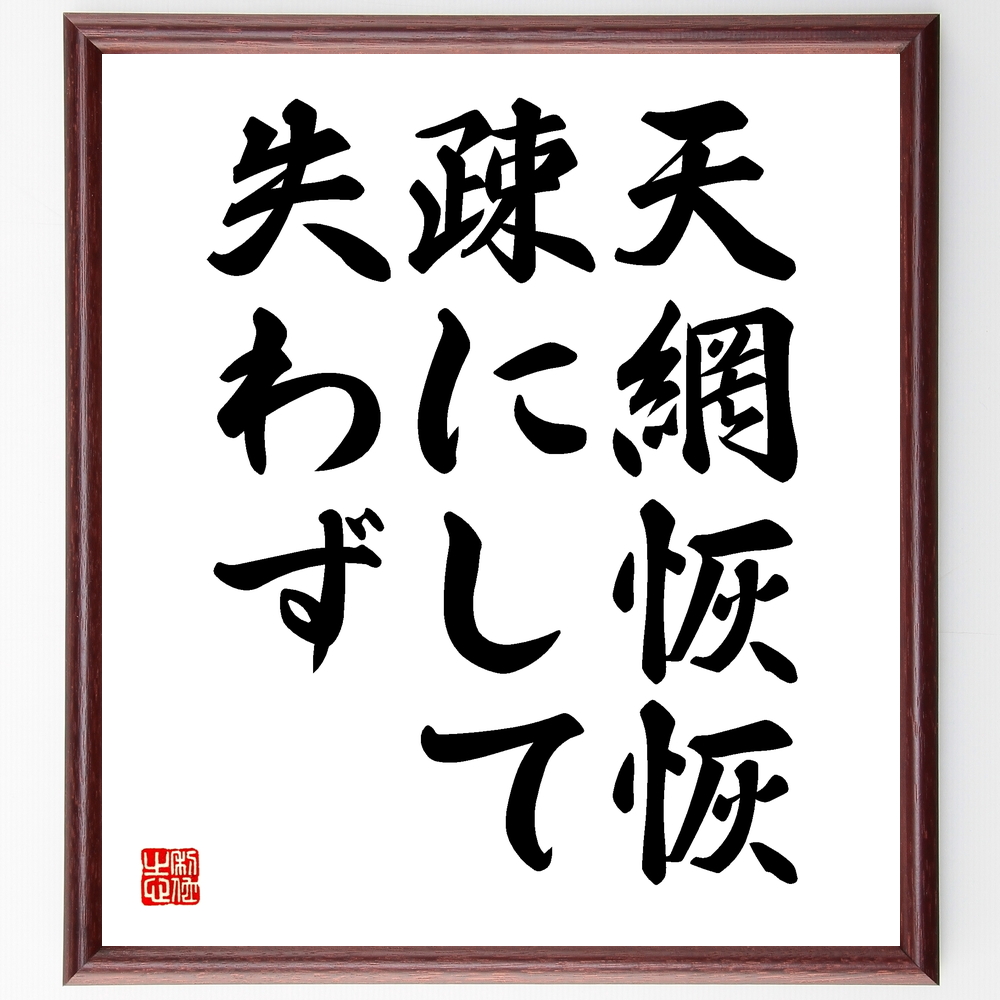 名言「天網恢恢、疎にして失わず」手書き書道色紙額/受注後の毛筆直筆