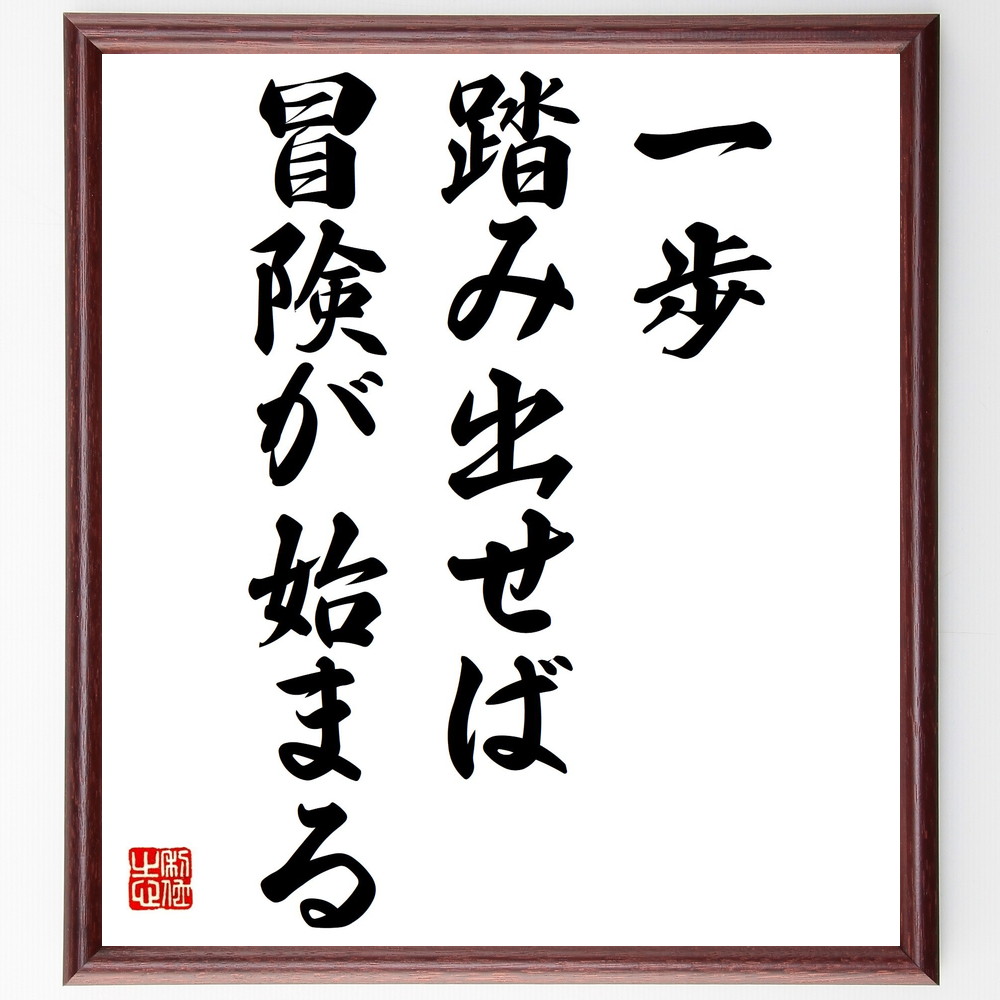 名言「一歩踏み出せば、冒険が始まる」手書き書道色紙額/受注後の毛筆直筆