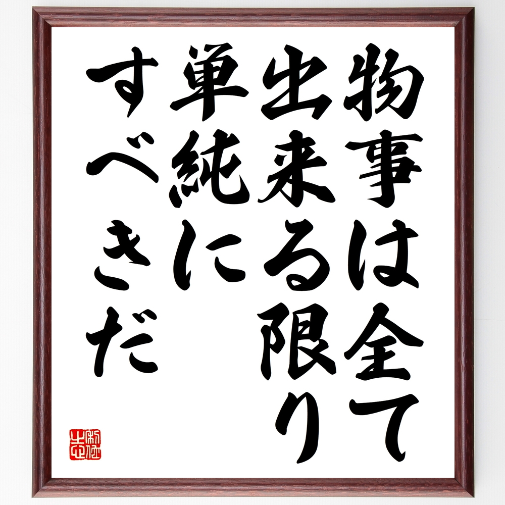 アインシュタインの名言「物事は全て、出来る限り単純にすべきだ」手書き書道色紙額/受注後の毛筆直筆