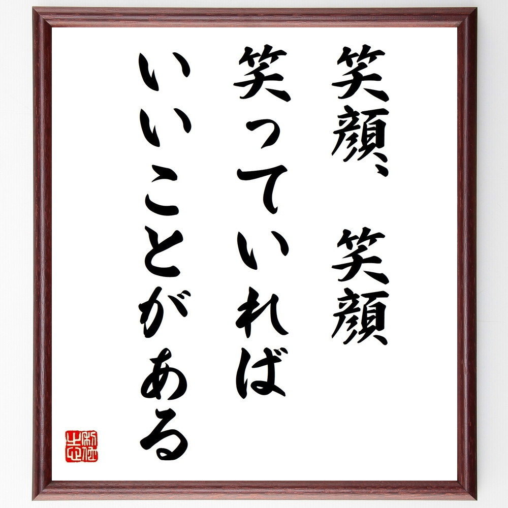 名言「笑顔、笑顔、笑っていれば、いいことがある」手書き書道色紙額/受注後の毛筆直筆