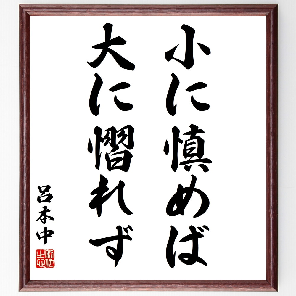 呂本中の名言「小に慎めば、大に慴れず」手書き書道色紙額/受注後の毛筆直筆