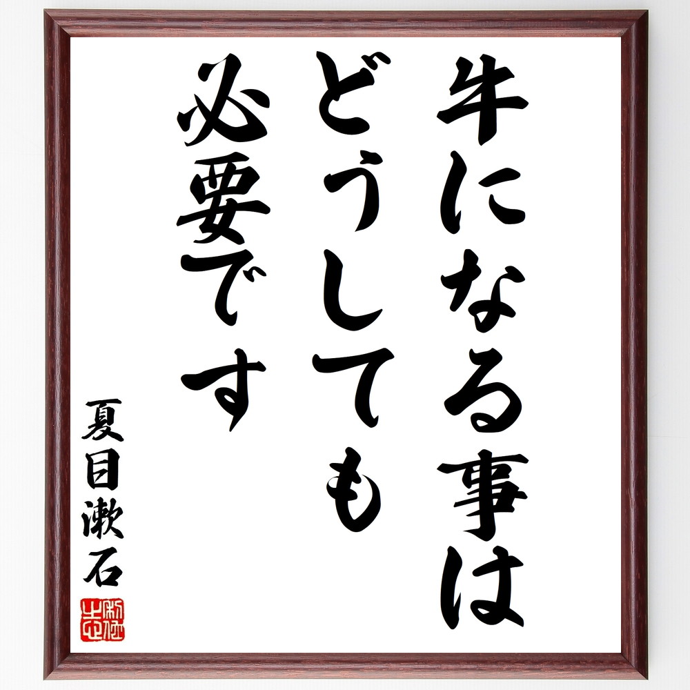 夏目漱石の短歌・俳句「牛になる事はどうしても必要です」手書き書道色紙額/受注後の毛筆直筆