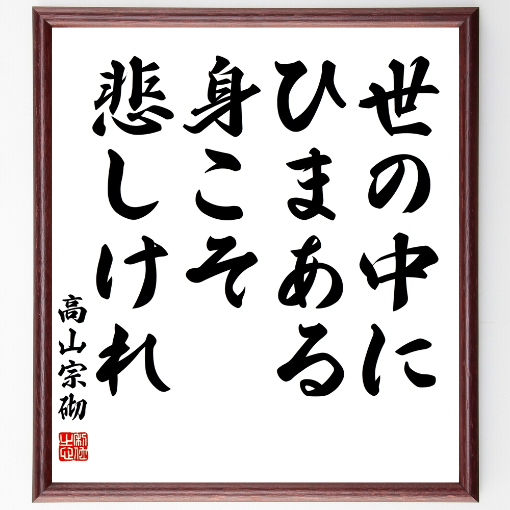 高山宗砌の名言「世の中にひまある身こそ悲しけれ」手書き書道色紙額/受注後の毛筆直筆