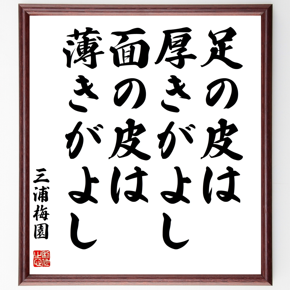 三浦梅園の名言「足の皮は厚きがよし、面の皮は薄きがよし」手書き書道色紙額/受注後の毛筆直筆